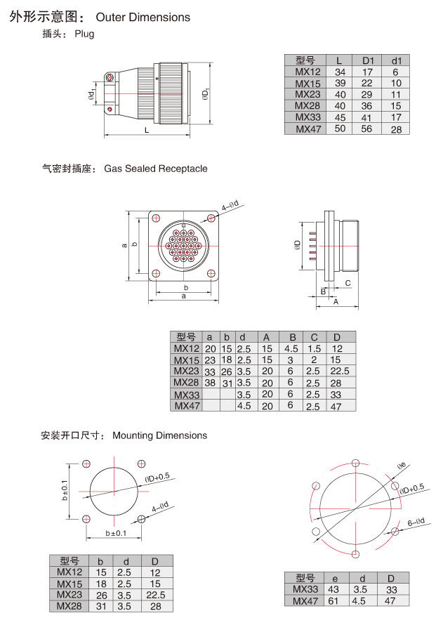 MX系列氣密封圓形連接器,主要技術參數非等效采用美軍標MIL-C-26482G。 供航空,航海及其他密封容器中電子設備與電源.電氣間連接,導線與電纜間電氣連接用。連接方式為螺紋連接鎖緊機構,使用方便。插座采用玻璃燒結工藝,氣密封性高,屬于儀器式電連接器。