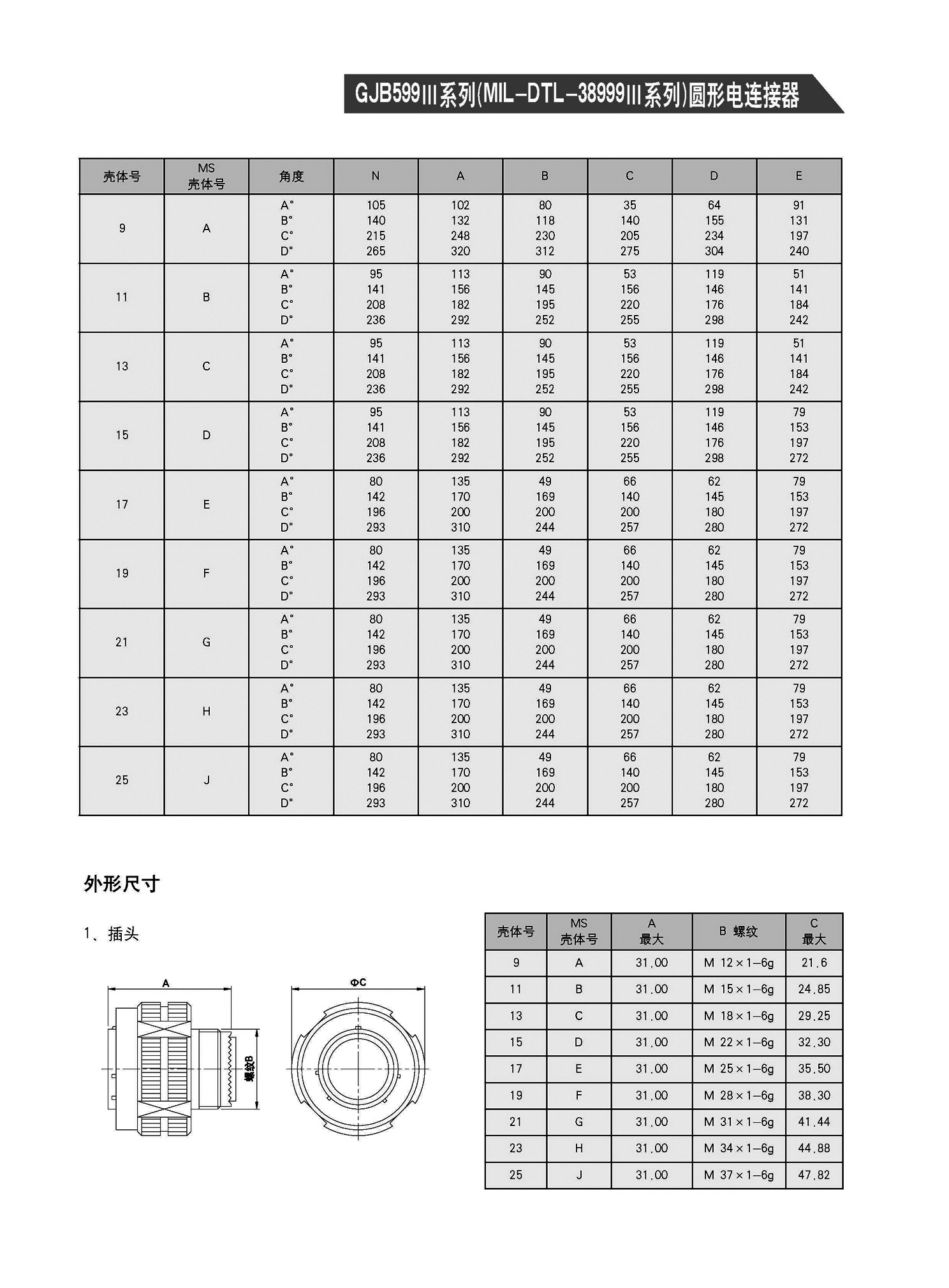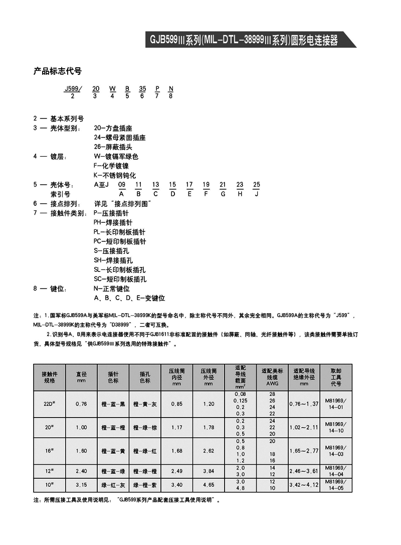 - GJB599I系列圓形航空插頭(MIL-DTL-3899)
