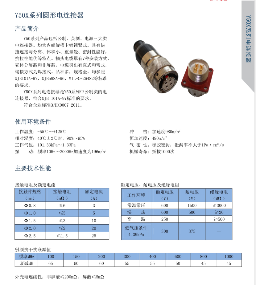 電連接器型號 Y50X公制系列 方法蘭插座防水插頭: