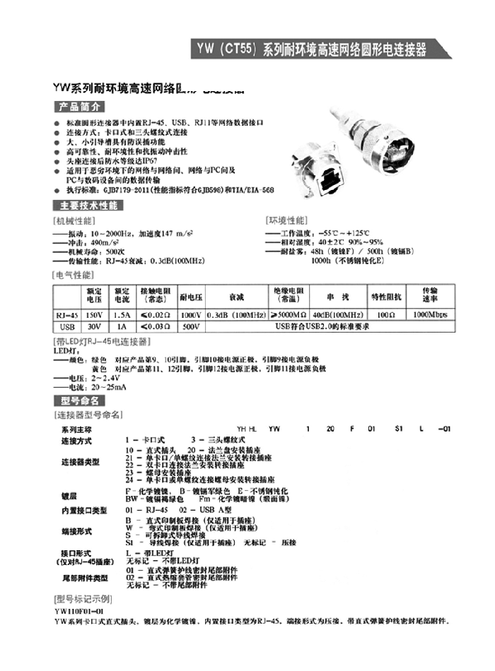 YW-RJ45圓形網絡電連接器:
