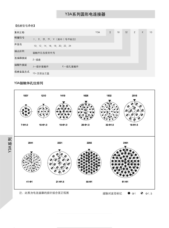 Y3A-2041ZK10/TJ5直插鎖緊航空連接器,芯譜排列不規(guī)范,一般成圓圈型,與Y3系列航空插頭排列不一樣,型號種類多一些,接觸件有粗有細(xì),電流也有大小,尾部有兩種熱縮套管式I II型,插座是固定方法蘭形式,可以灌膠密封,承受0.2MPA壓力。