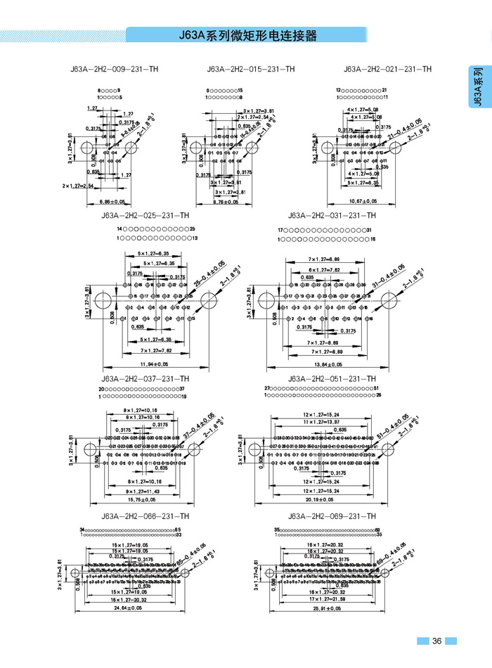 J63A 型90°彎插印制板航空連接器,端接方式是印制板,而且是90°彎腳,座殼體與墻體正常安裝,印制板平行放置,與插針直接焊接。要說明的是印制板可以立著放,這時選用直式插針焊接。以下是選購圖: