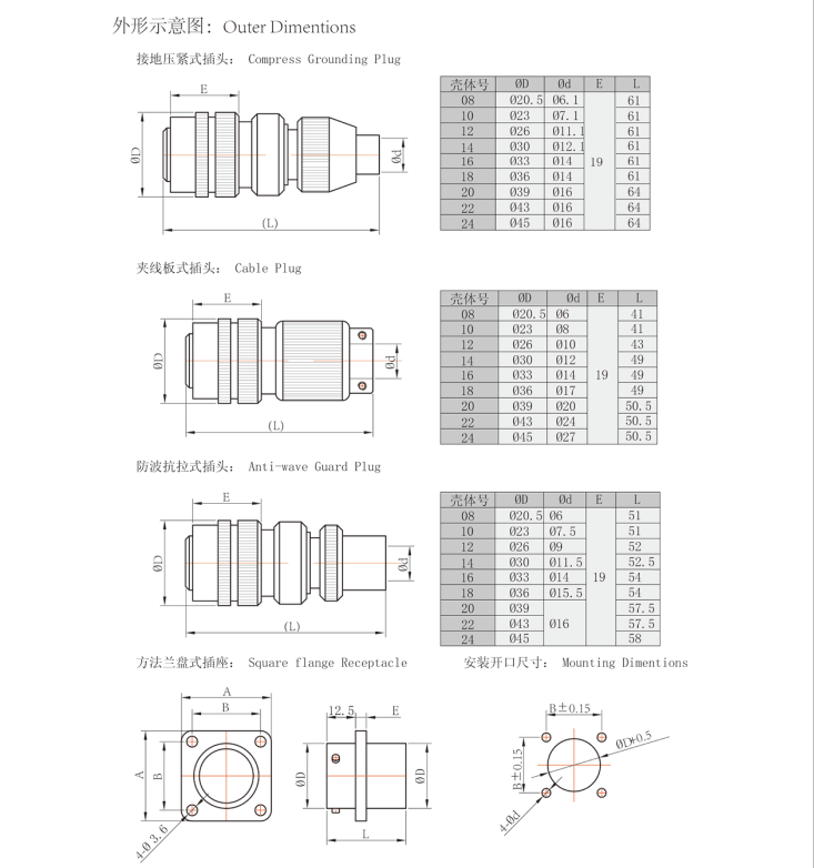 50A 4芯卡口式防爆電連接器,尺寸大小是借用GJB101A質量標準,不同的是插頭與插座接口處有防水防爆設計,保障無