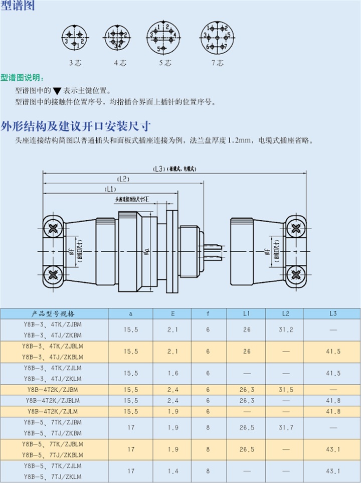 Y8B-7ZJBM/TKL密封型圓形電連接器:
