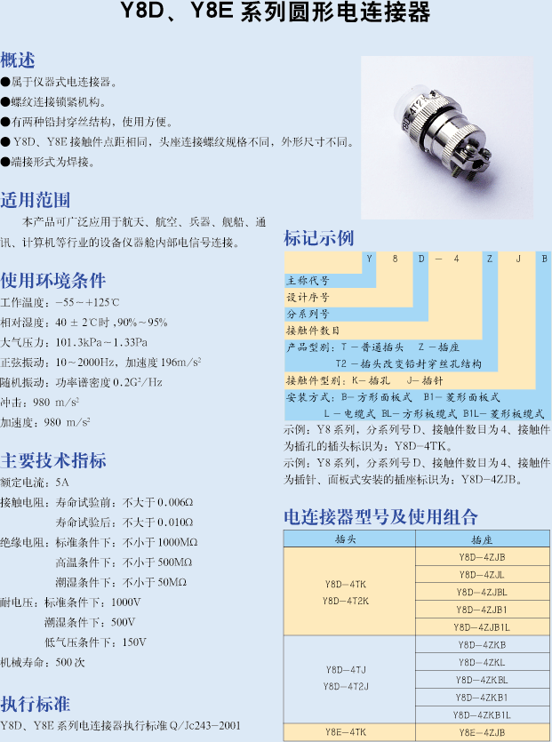 - Y50X系列圓形航空插頭(GJB598A-96)