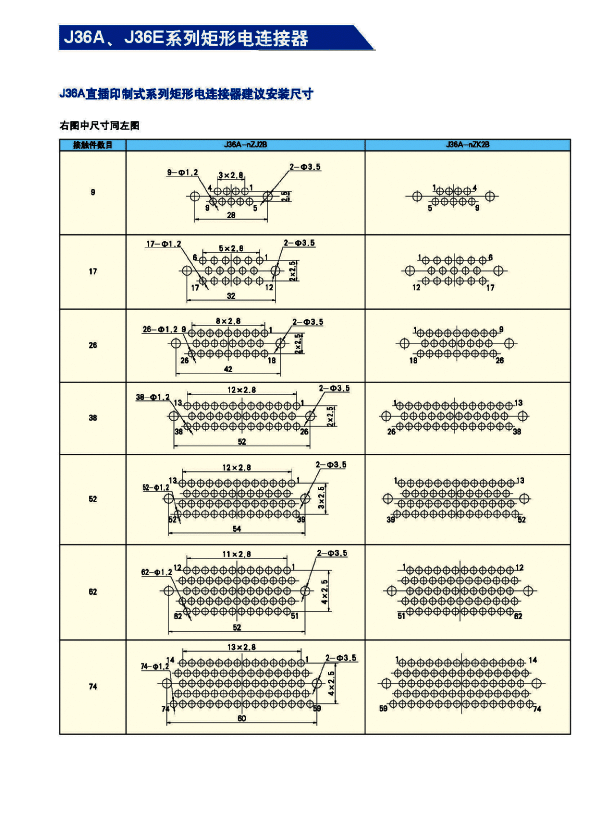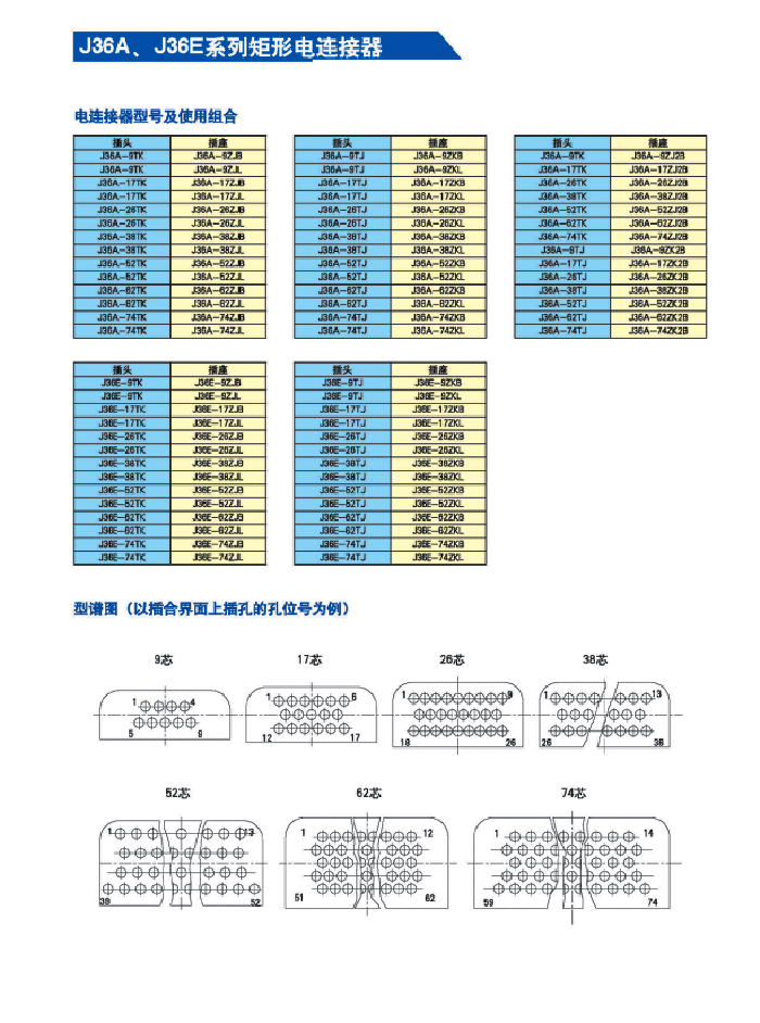 J36A/E矩形航空插頭執行Q/HD20038-2007詳細規范,屬于儀器式電連接器。具有體積小、密度高、規格齊全、雙保險鎖緊結構、可靠性高等優點,端接形式為焊接式和直插印制板式。廣泛應用于航天、航空、兵器、艦船、通訊、計算機等行業的設備儀器艙內部電信號連接。