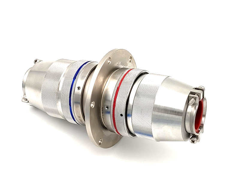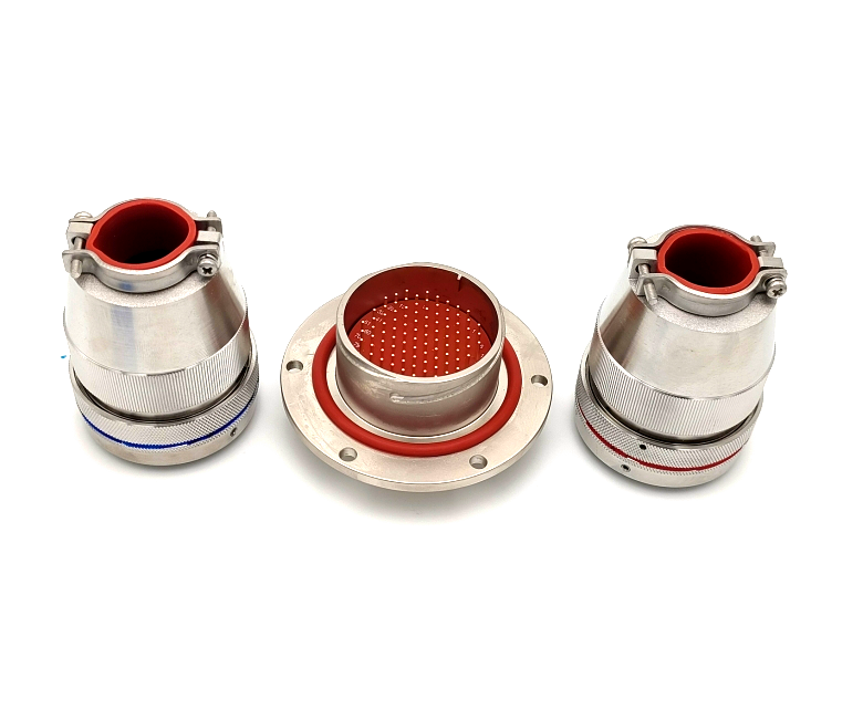 真空箱體壁上,里外有連接插頭,撤卸方便。螺紋連接方式,不防誤插,插針和插孔無法定位,有攆彎或攆斷現象。卡口