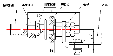 ,插孔為一錐度螺桿,需安裝固定在厚度16mm的環氧玻璃布上,穩定牢固,絕緣,與電纜采用壓接形式,接觸性好。