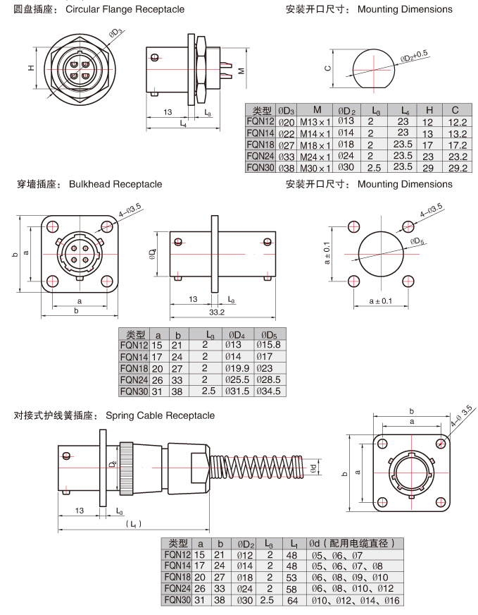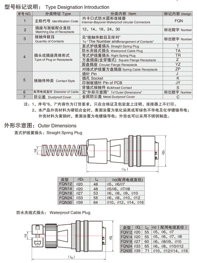 FQN系列內卡口式防水型圓形電連接器,符合Q/LLL002-2008標準,產品的安裝尺寸及接點型譜等同FQ和Q系列產品價格,是FQ系列產品價格的改進型。體積小,重量輕,內卡口快速連接,零件由鋁棒或銅棒車加工制造(非鋁壓鑄件),耐環境,防水、防鹽霧、防霉菌,操作使用簡便。插針、插孔引線采用焊接式。產品價格被廣泛使用于各種電子儀器、電子、電氣設備間有防水要求的電連接中。產品價格符合按鐵道部標準TB/T2761。產品價格針、孔可以根據您的要求互換。