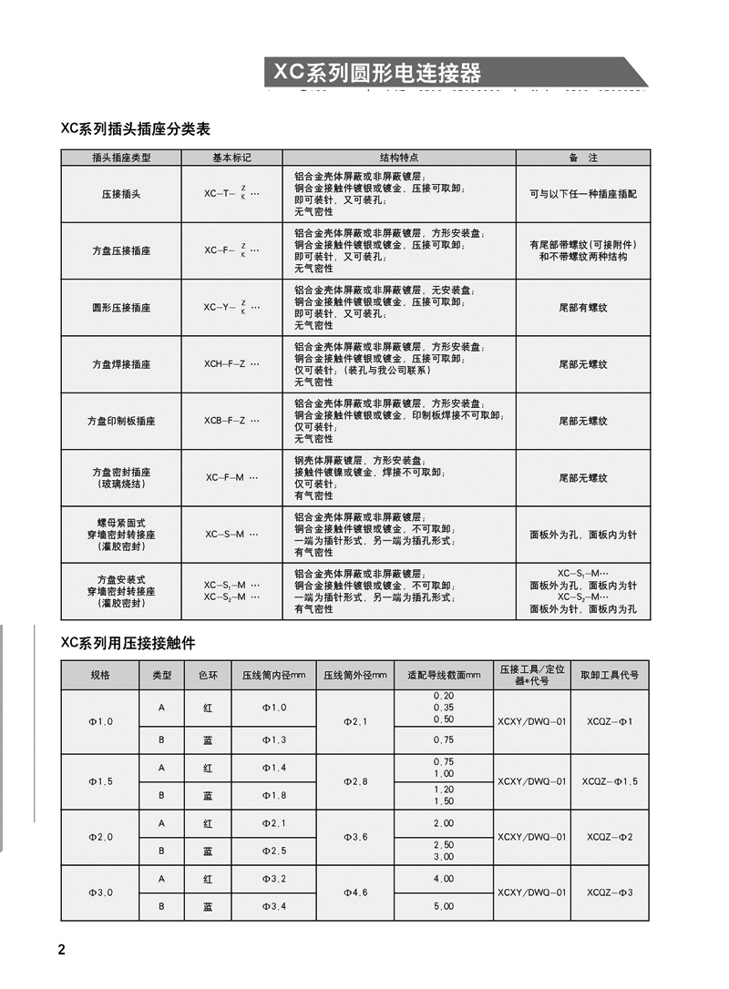 XC系列圓形航空插頭為低頻類電連接器。九種殼體號;4種接觸件規格;32種孔位排列。從1孔到62孔。采用卡口式快速連接系統,操作方便,連接可靠,耐振動,抗沖擊。五鍵槽定位,具有盲插和防誤插功能。高可靠的雙曲面線簧孔使連接器插拔柔和,接觸電阻小,工作可靠。插座共有五種結構形式選用。XC系列圓形線簧孔信號電連接器,符合國家軍用標準GJB2889。廣泛用于航天,航空,航海、鐵路、野戰通訊及各種儀器、儀表等設備中。