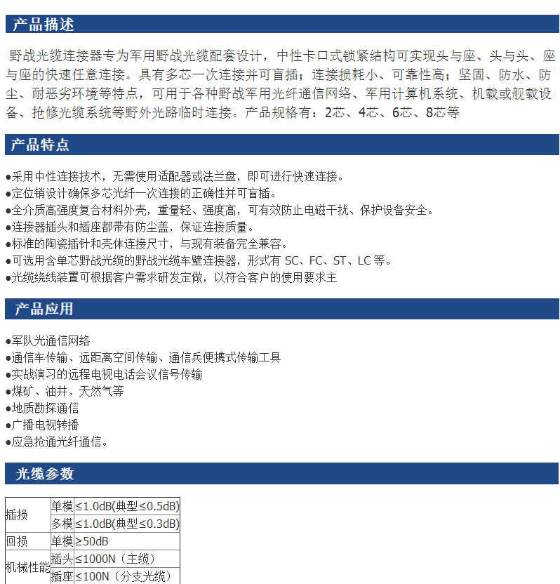 8芯對插式野外活動光纜連接器,和常規光纖連接器一樣,有塑料和金屬殼體兩種,結構有固定式和移動式,表面氧化發黑,新型號表面