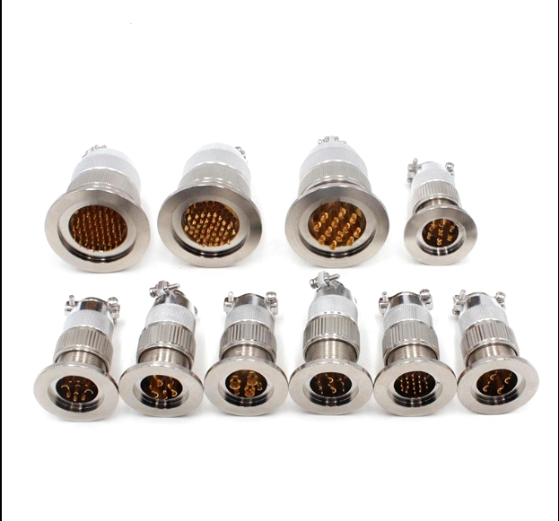 該型號是我公司新開發(fā)產(chǎn)品,每根插針3.0mm,電流可達30A左右,表面鍍金,接觸電阻小,插拔柔和,無打火花現(xiàn)象。 采用KF40法蘭固定形式,安裝方便快捷。插針固定采用玻璃燒結(jié)工藝,密封性能好,廣泛用于真空設(shè)備,密封容器中, 在抽壓,或施壓狀態(tài)下,不漏氣,正常電流或信號的輸送。與插頭現(xiàn)有兩種連接方式,螺紋和螺旋卡口連接,建議選用 卡口鎖緊,連接不費力,三只鉚釘雙重鎖緊。