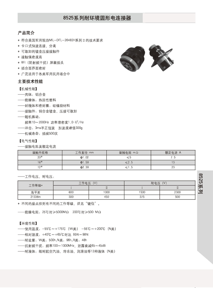 8525系列耐環(huán)境圓形電連接器: