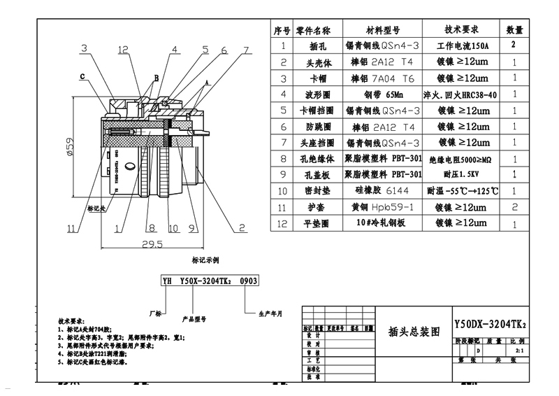 4芯150A圓形大電流航空插頭,接觸件4芯,插針9mm粗,可焊接50平方線纜,每芯額定電流150A,耐電壓1200V,插座與插頭采用螺旋卡口方式連接,安全可靠,防震不容易脫落。表面鍍層有黑色,白色,軍綠色,有客戶選擇。廣泛用于電源設(shè)備之間的線路連接。