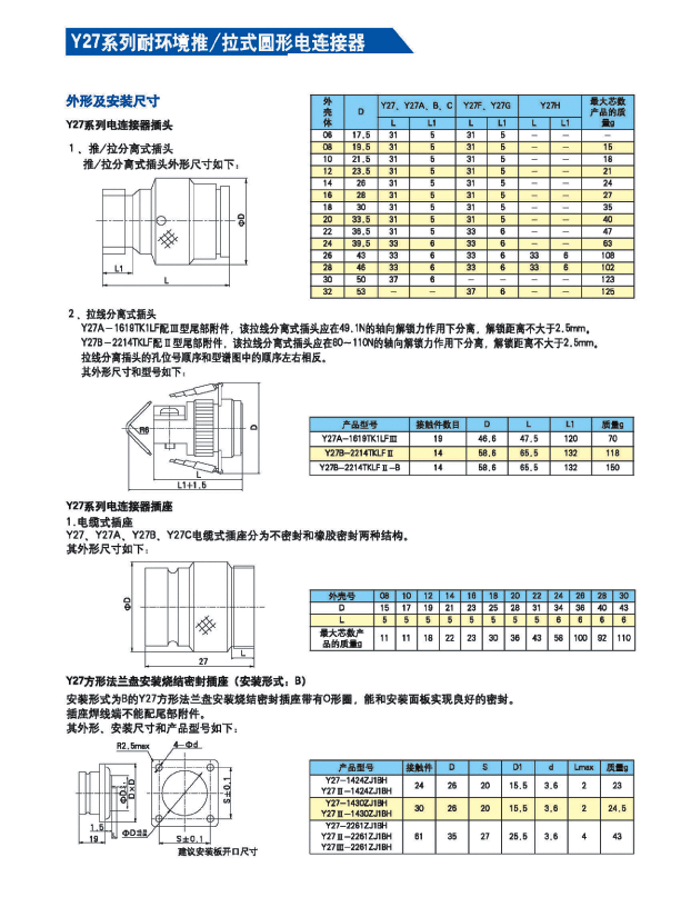 Y27B-2004ZKBM-B不銹鋼推拉式航空插頭,材料是不銹鋼,防腐,防鹽霧,推拉鎖緊,接觸件4芯,電流大,額定電流50A,插座有方形插座,圓形插座,穿墻插座,顏色不銹鋼鈍化,鋁合金氧化著色,銅鍍鎳,適用于安裝空間小的環境。