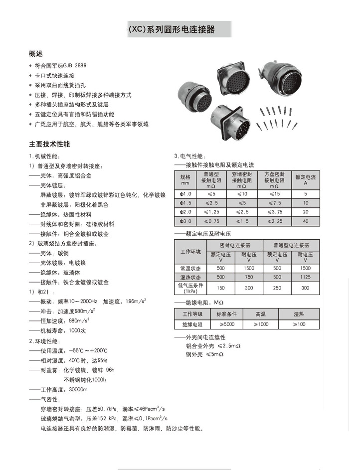 多芯壓接式/焊接式XC圓形航空插頭,該系列產(chǎn)品質(zhì)量是執(zhí)行GJB26482標準,卡口連接,插頭尾部有多種形式,客戶 根據(jù)使用環(huán)境選用,插座有圓形法蘭和方法蘭形式,穿墻壁厚可以加長,可以做成玻璃燒結(jié)密封插座,插頭可以裝 插針或插孔,線簧絞線孔,接觸面積大,傳輸快,插拔柔和等特點。端接形式有壓接或焊接,客戶如果場地沒有電源 壓接就起到很大的作用,壓接S形彎曲,接觸可靠。
