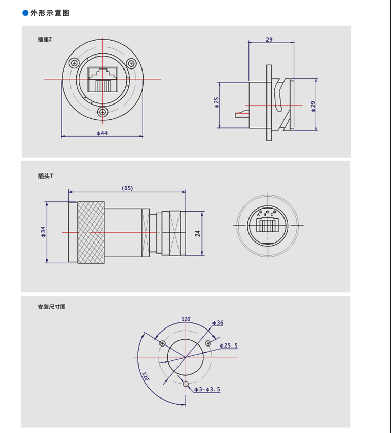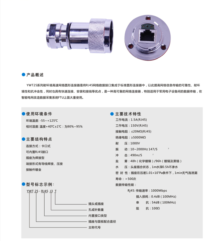YWT25-RJ45數據采集FTU專用圓形電連接器: