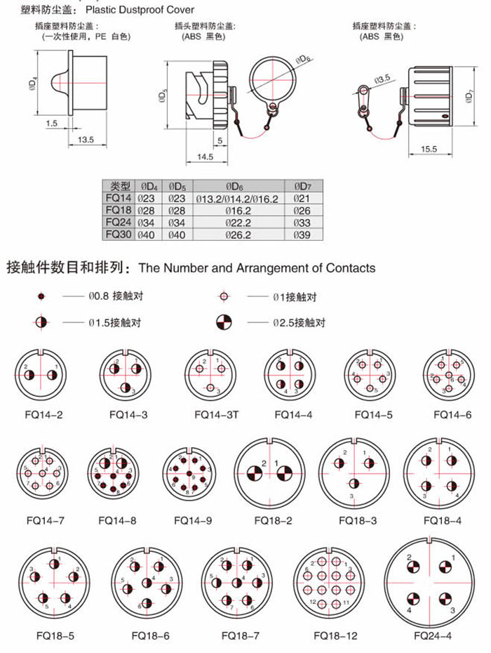 FQ 系列防水圓形電連接器符合電子工業部元器件工業管理局局標準DZ4Q/RE008-84制造,產品結構先進,可靠性高,插孔接觸采用高可靠的鼠籠式彈性接觸代替傳統的線簧結構,產品具有接觸電阻小、抗振動、耐沖擊、密封性強等特點,插頭座連接為卡口式快速連接,使用簡單,操作方便,被廣泛應用于各種電子設備間的電氣連接。